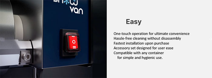 Developed and sold by Snowvan, a company that has spent 30 years researching and manufacturing in the field of shaved ice machine production, accumulating unparalleled expertise and technology.